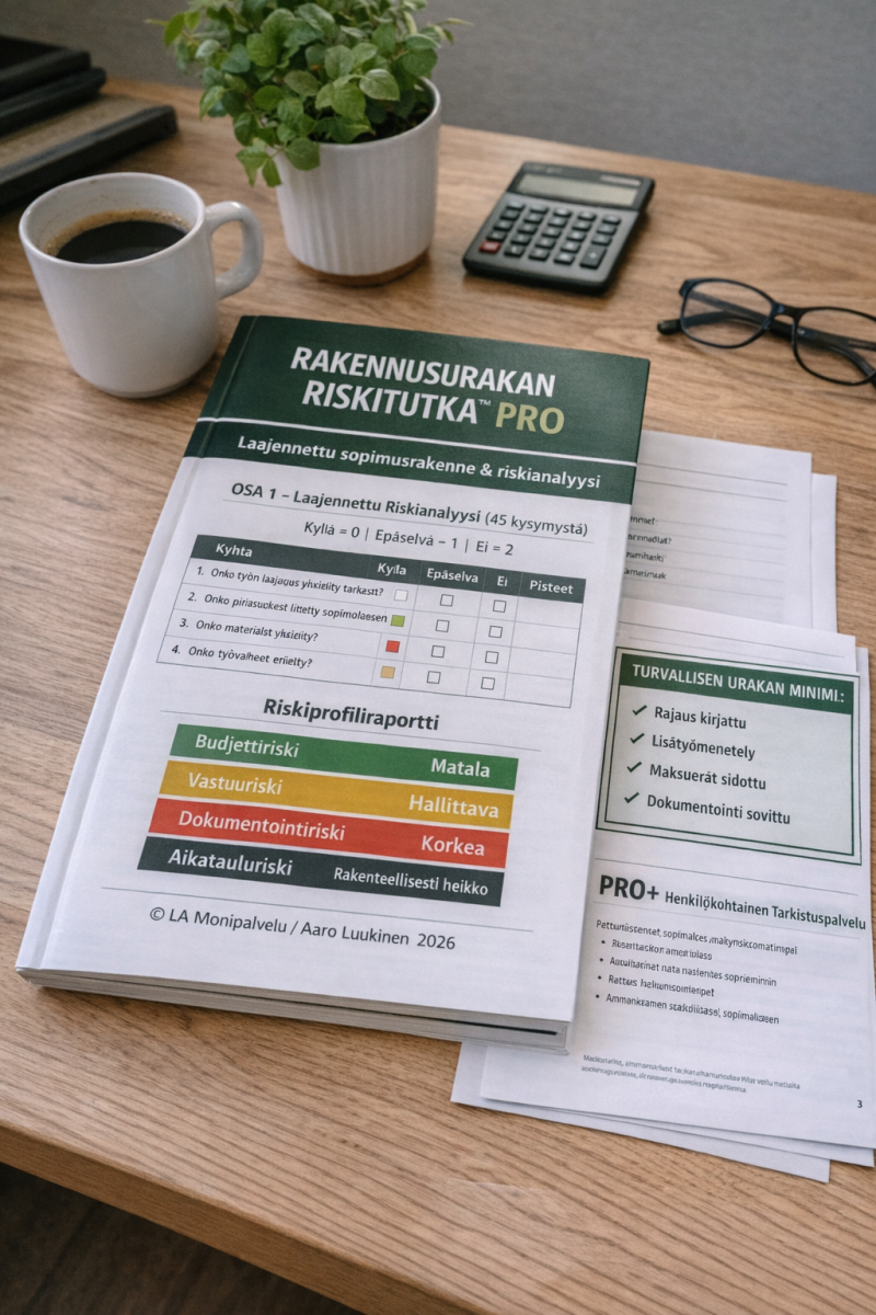 Riskitutka™ PRO ei arvioi työn laatua – se arvioi sopimusrakenteen vahvuutta.